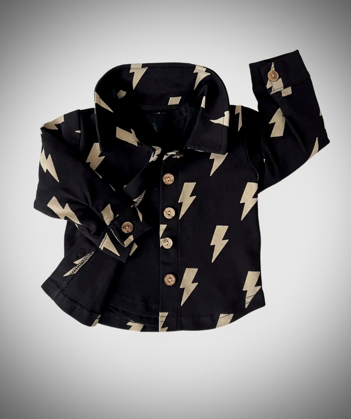 For the littles who were born to stand out-  the Black Bolt Shacket brings cozy fall vibes with a spark of bold energy. Made from soft, breathable cotton, it’s perfect for layering up on chilly days or dressing down for playtime.